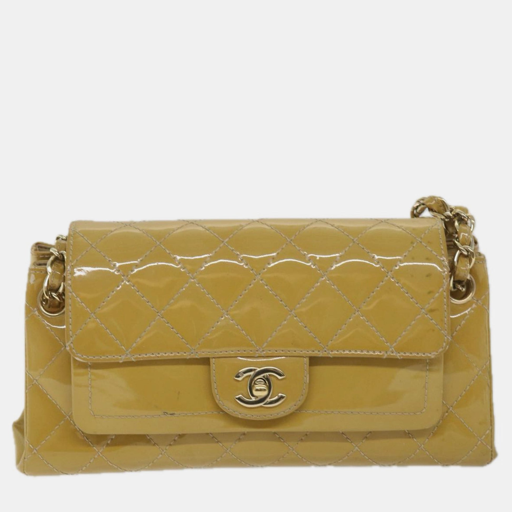 Chanel Yellow Patent Leather Matelasse shoulder Bag